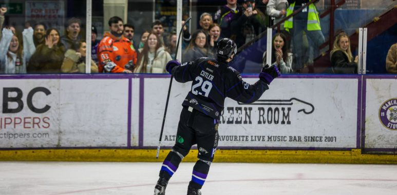Storm shelter is a hard place to play, innit? Of the top 4 (Currently, in descending order, Belfast, Nottingham, Cardiff and Sheffield), all except Nottingham have lost there, but they have only been there once, so there’s still time yet. The angles are tight, wall to wall it’s a narrow ice surface, it’s rough ice, its cold, it’s daunting, it must feel like the fans are sat on you, and Storm themselves are very unforgiving. They’re fast, they get into it every opportunity they can after the whistle, they’re not afraid to finish hits, and they’re absolutely willing to get the dirty stuff done to get a win, and hats off to them, honestly. There’s not an arena, or in this case, tin shed, in the league, that an opposing player should go to and feel welcomed. Part of the “home ice advantage” IS the fans. It IS the environment. The home team train there at least twice a week and play there usually at least once. They’re supposed to know where the weird bits of the glass are. It’s supposed to be uncomfortable for the opposition, it’s supposed to be unfriendly, and it’s supposed to be annoying – and it’s all of those in spades. Head Coach Cam Critchlow also played for them for the better part of 250 games, so he knows what it means to wear that crest, and that is very evident in the style they play.